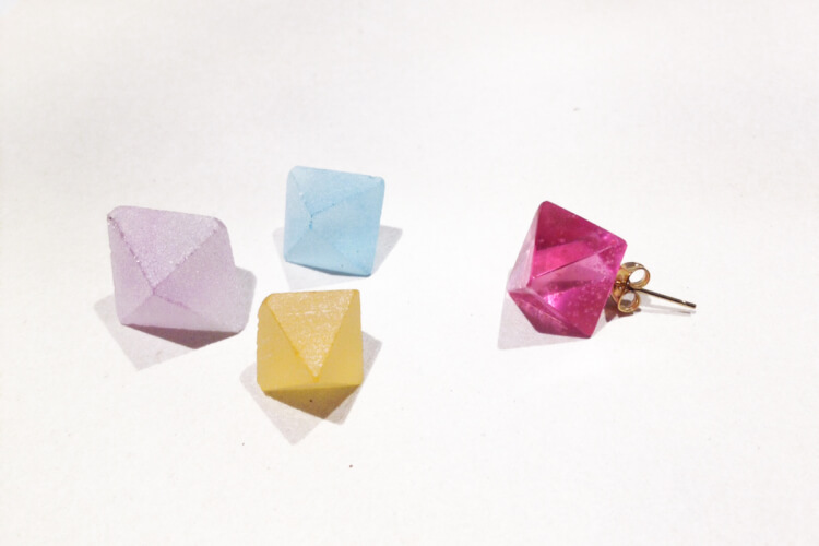 ③磨き終わったら、ピアスかイヤリングのパーツを接着し、乾いたら完成。