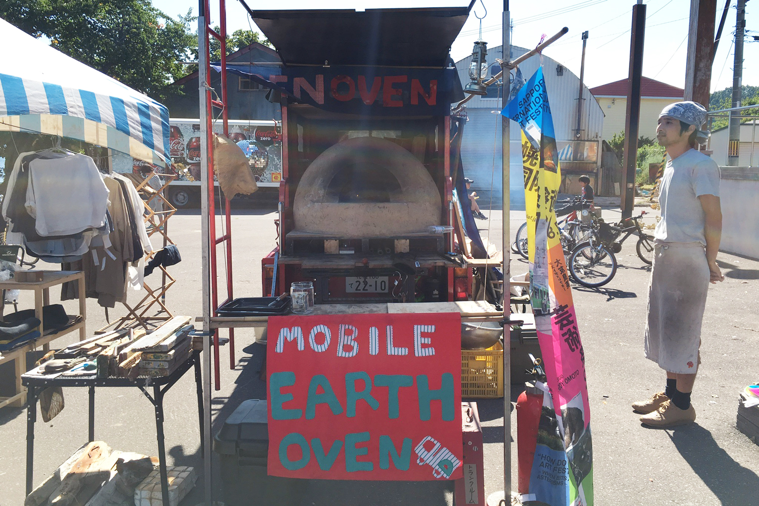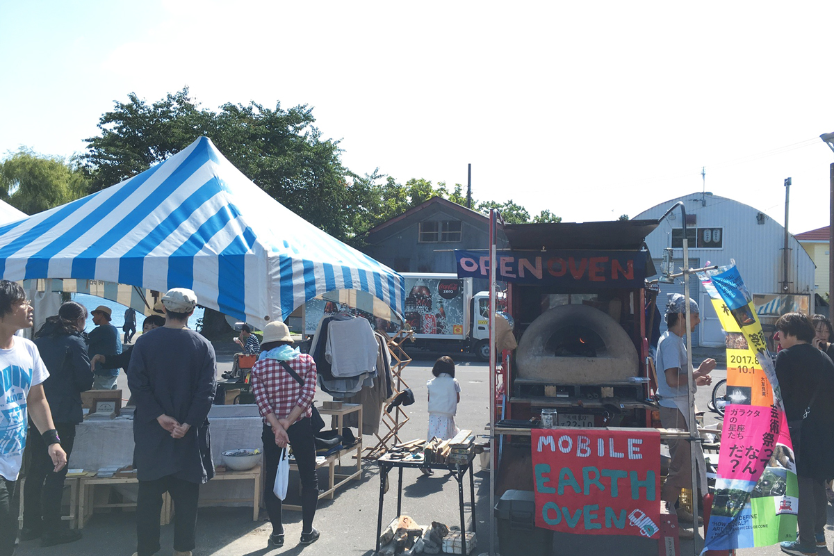 役目を終えた消防車の荷台に自然素材だけで作られたオーブンを載せ、たべるとくらしの研究所、安斎伸也理事長の作品として、SIAF2017会期中さまざまな場所やイベントに出動しています。