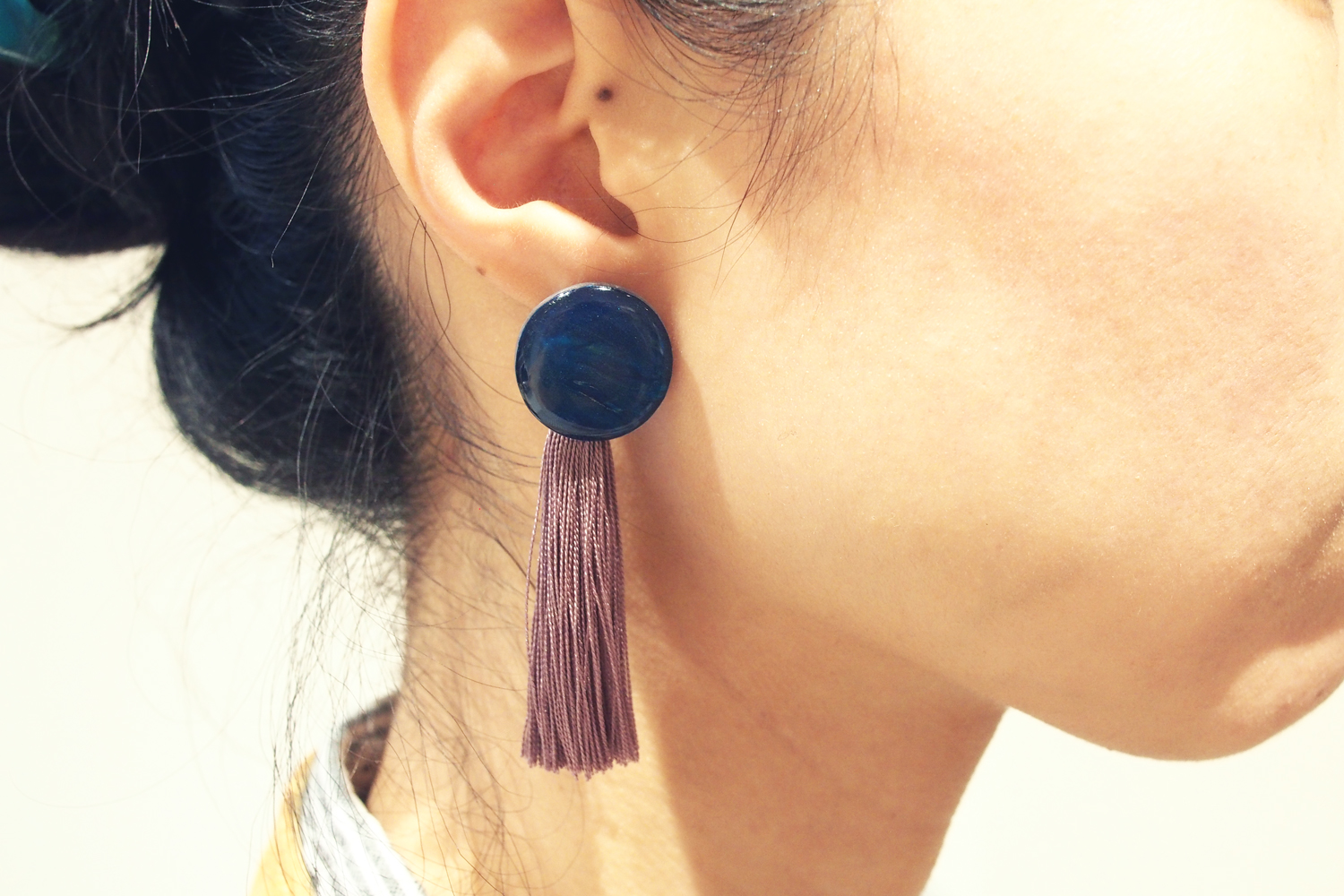 ※グリーンとライトベージュのピアス・イヤリングはタッセルの色見本となり、今回作る作品とは異なります。