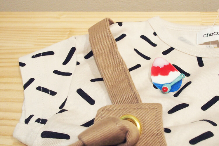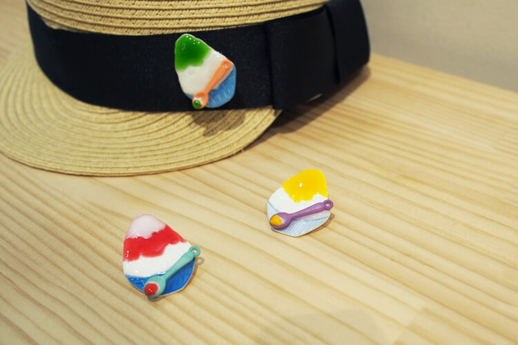 かき氷のお皿とシロップ部分に色を塗り、ブローチを作ります。